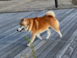 スタージョンムーンで周囲が明るくなり、エヘエヘ笑顔で散歩していることがバレてしまう柴犬